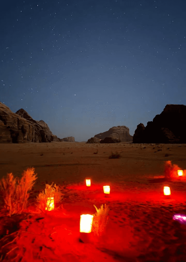 Just after dinner, join us for a magical night tour in Wadi Rum. As the camp lights go off, the sky fills with countless stars. Our experienced Bedouin guide will drive you to a stars watching spot, away from the camp. We’ll set up a cozy picnic with a carpet, pillows, and a campfire to brew tea. Relax as you stargaze and enjoy the deep silence of the desert. Our guide will share stories about Bedouin traditions and the constellations. This tour is perfect for stargazing and experiencing the night time silence of the desert. Join us for an unforgettable experience.