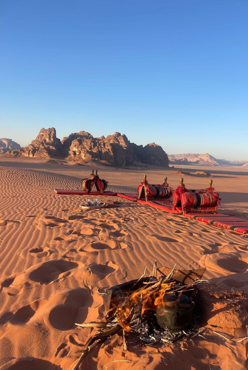 At the end of your trip, enjoy the sunset by the fire with sip of hot Bedouin Tea.